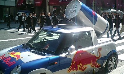 赤い牛のマークのエナージー飲料の キャンペーンのようです