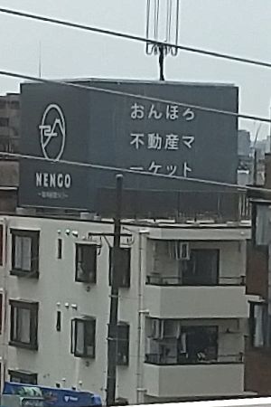 アップにして見ると おんぼろ不動産マーケット と読めます