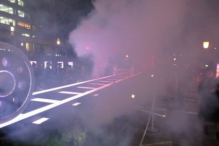 沢山の街路樹にある 数え切れないほどのLEDランプの中から