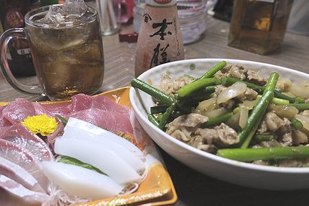 焼酎のホッピー割りで始まった夕食(ひとり宴会)