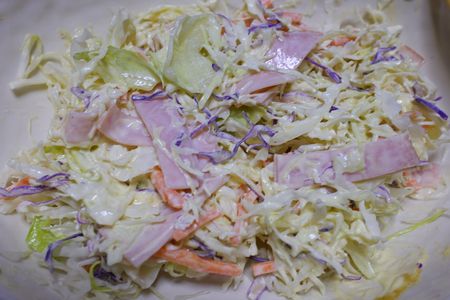 食べるのですが 今日は刻んだハムを入れ マヨネーズで和えました