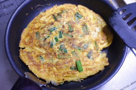 私はそのまま 溶き卵に刻んだニラを入れて焼くだけ