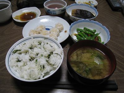 昨日の崇りか? 今日の夕食は なんと 紫蘇ご飯でした
