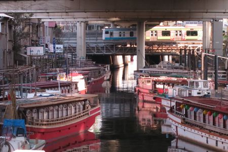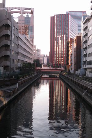 チョット外れた 浜松町の運河 上空は首都高で塞がれていますが