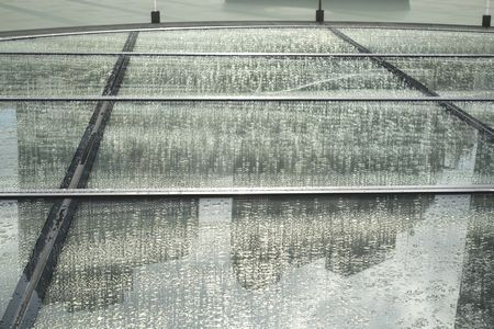 雨しずくが乗った ガラスの天板(手ブレ風に見えます)