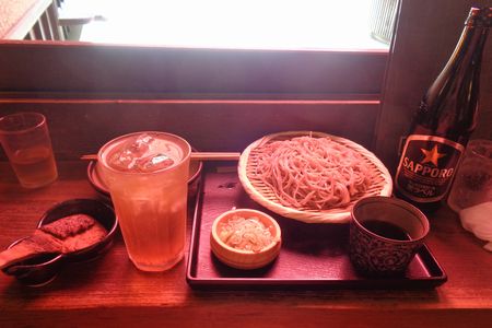 ビールと焼酎のそば茶割(冷)で涼をとります