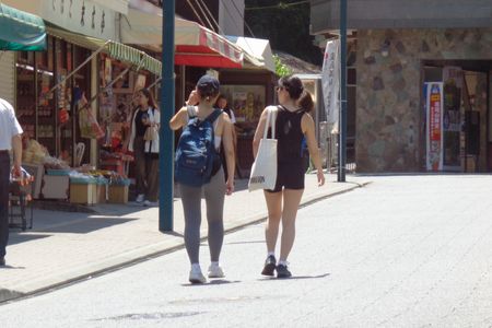 まるで海水浴にでも行くような格好で 歩いている外人を見ました