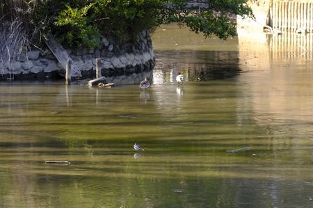 先ずは鴨が遊んでいる いつもの公園です 手前の方が凍っています
