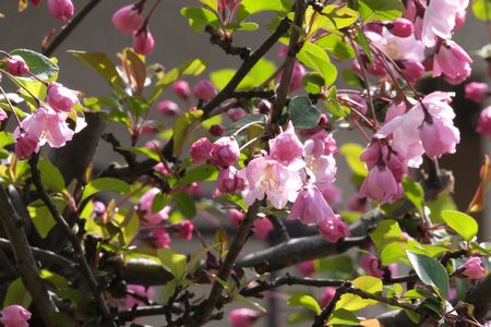 海棠桜が花を付け 蕾も膨らみ ほころび始めてきました