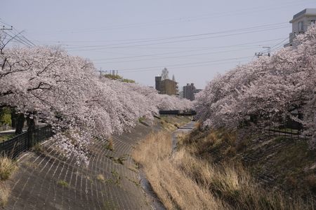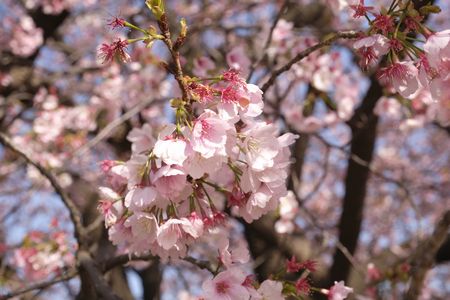 毎年今の時期 多摩堤通の道路脇にオオカンザクラが咲きます