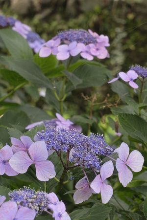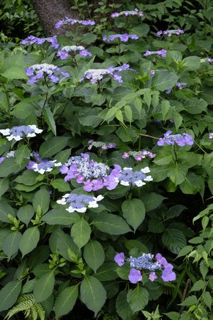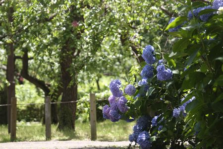 府中の森では 梅の木の下にあじさいの株があります