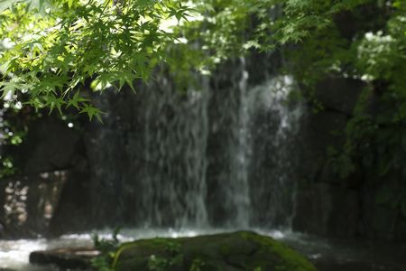 滝をバックにしたのは あじさいではなく もみじでした
