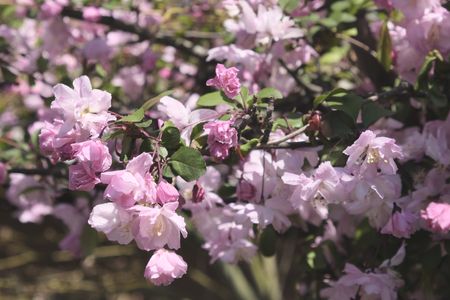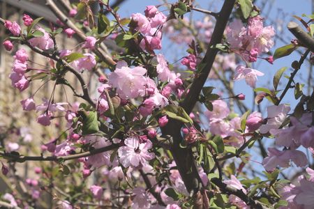 今日は良い具合に咲いた 我が家の海棠桜を