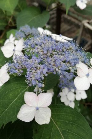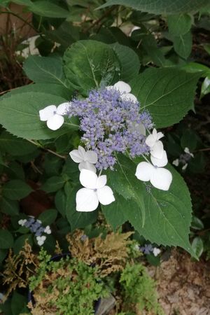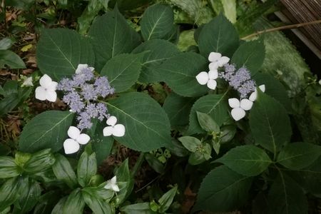 庭の片隅のガクアジサイ いつの間にか花が開いていました