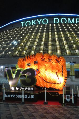 ドームの横に リーグ優勝を祝すディプレイが・・・