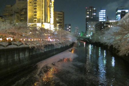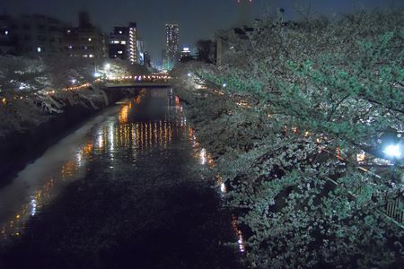 18時30分 中目黒の駅は 夜桜を見る人人人・・・