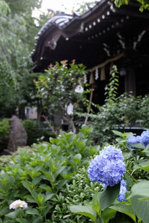 社殿前の あじさい や