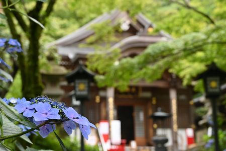 大師堂とアジサイ アジサイがも少し大きければ良かったのに・・・