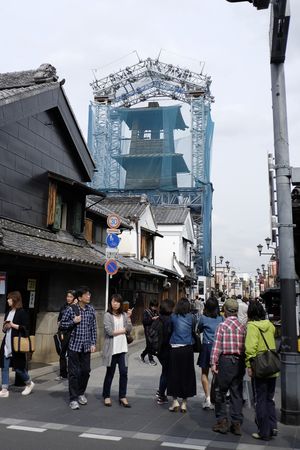 先ずは 時の鐘 改修中のため珍しい映像が撮れました