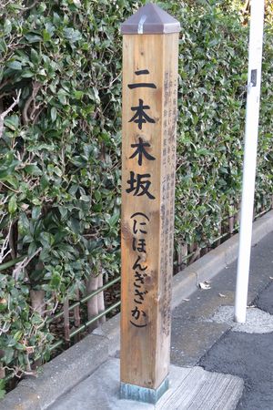 向かう古い道である。坂名は、旧馬込村の小字二本木に由来する。