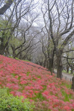 彼岸花は 梅林の下に広がっていました