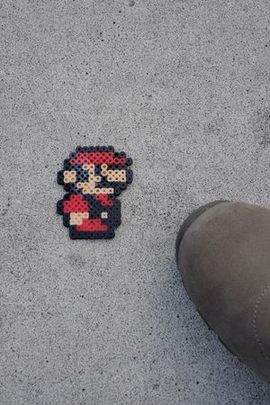 マリオの正体は 何やら色付きのビーズを埋め込んだよう
