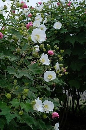 酔芙蓉 白い花ですが 夕方までに赤く染まるのです