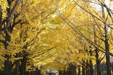 先ずはイチョウ並木からです 今の時期見ごろのため 人が多いです