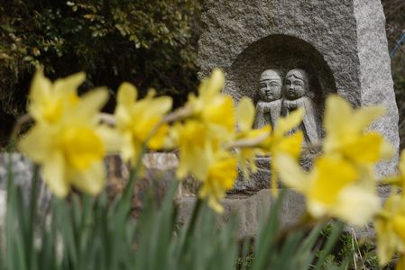 お彼岸の墓参りに行ったときの 墓地の近くの道祖神