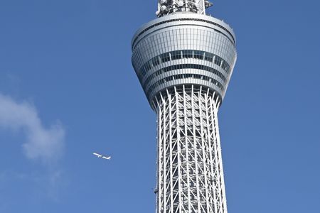 空木をかすめて飛ぶ飛行機を撮影 どこの飛行機会社か判りません