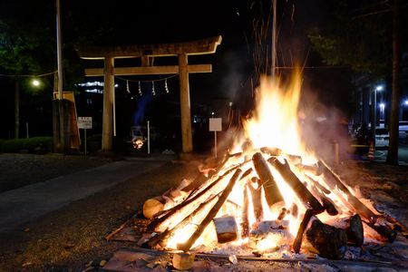 お焚き上げのたき火も 暖冬のため当たっている人は少ない