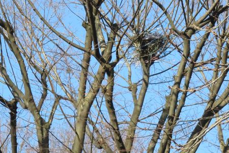 近所の公園の ケヤキの枝先に カラスの巣が作られていました