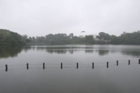 雨に煙る洗足池 カラーで撮っていますが