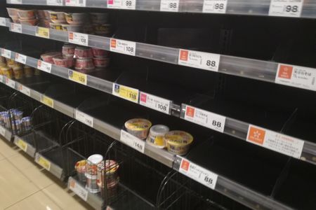 面白いことに スーパーのカップ麺棚は ほとんど空でしたが