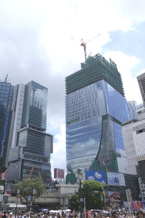 左の建物が ヒカリエです 中央は新しい東急百貨店でしょうか?