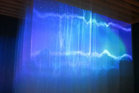 入口には スクリーンにオーロラの映像を投影 何層ものスクリーンに