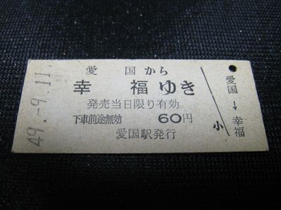 いまや廃線となった 北海道の広尾線の 幸福駅の切符です