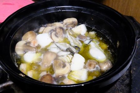 他には 冷凍もののエビとイカそしてマッシュルームも入れました