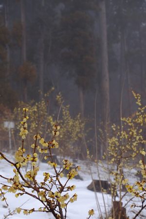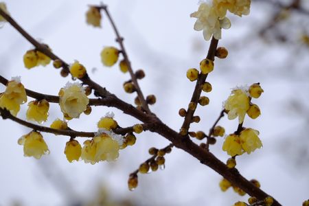 花びらに乗った雪を期待しましたが 昨夜の降雪は少しだったようです