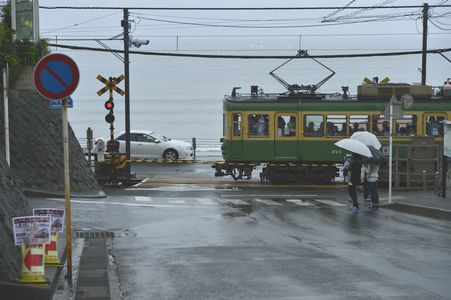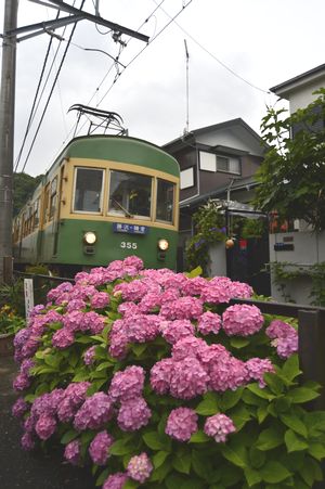 紫陽花と 江の電のコラボ しかし良いタイミングで