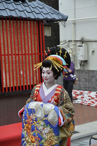 花魁道中が始まる 少し前 スタンバイしている花魁は