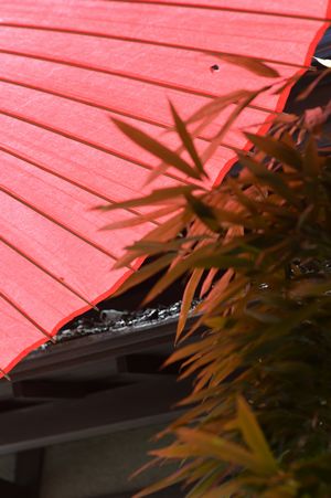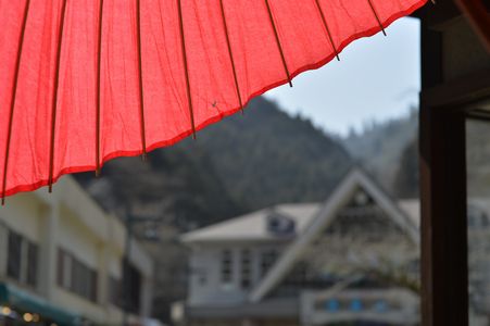 赤い番傘と 窓の外の景色の対比が 難しい題材です