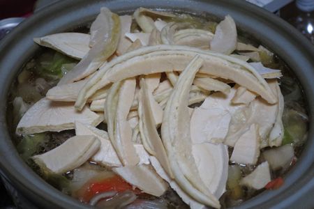 野菜に火が通ったら せんべいを投入 鍋用なので耳が多いです