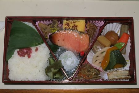 大増の野菜の煮付けが 弁当の右側にある以外