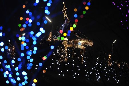 電飾の汽車が 銀河の中を走るような風景を撮影