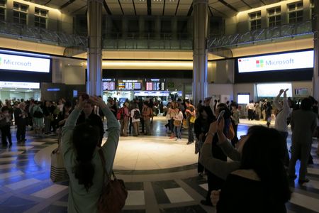 お陰で ドームを見る観光客は 改札を利用する人々とトラブルなく