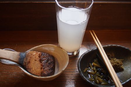 高橋家では 焼き味噌と そば湯割の焼酎が定番ですが