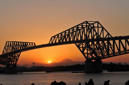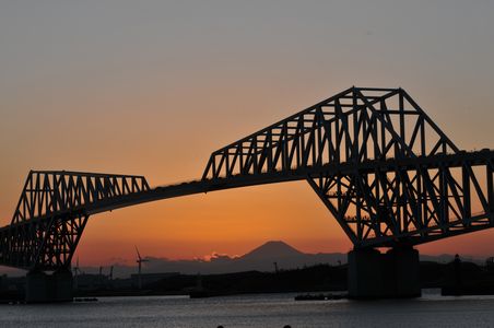 橋越しの富士山の映像 できればダイヤモンド富士が撮れれば