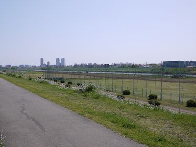 多摩川の土手の上です