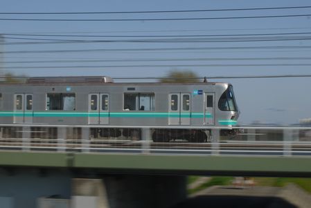 先ずは 多摩川大橋近くで日比谷線の車両を 流し撮り